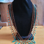 Channel your inner flapper girl by wearing this exotic, hand-beaded necklace. Made from 11/0 bronze iris seed beads accented with 6/0 turquoise-finished seed beads. Measures approximately 25 inches (63.5 cm).